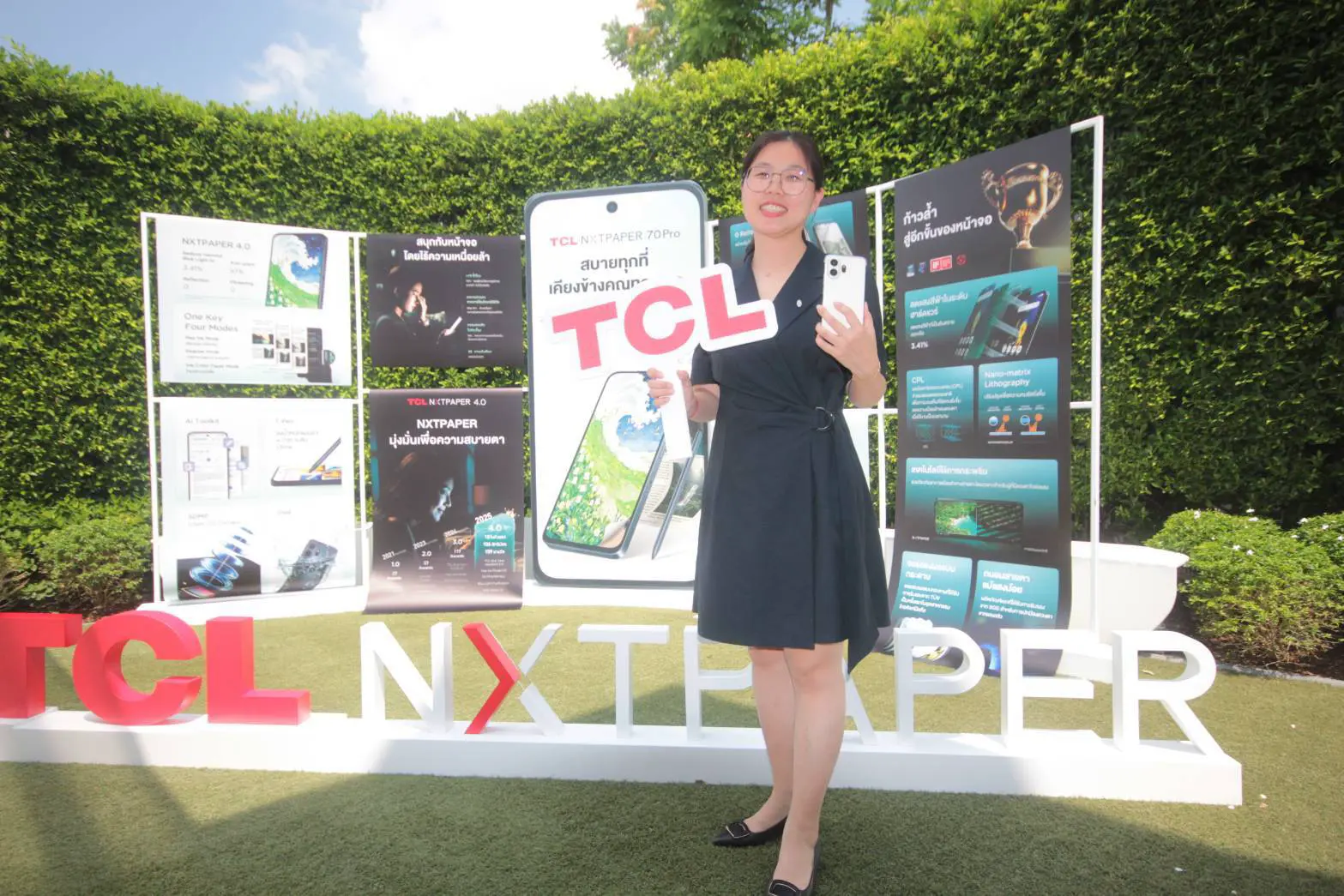 คุณ แกรี่ จ้าว กรรมการผู้จัดการ บริษัท ทีซีแอล อิเล็กทรอนิกส์ (ไทยแลนด์) จำกัด กล่าวว่า เราพัฒนาเทคโนโลยีใหม่ หน้าจอ NXTPAPER ขึ้นมาเพื่อตอบโจทย์ผู้ใช้งานในยุคดิจิทัล ทั้งการทำงาน อ่านข่าว สร้างสรรค์คอนเทนต์และความบันเทิง บนโลกโซเชียลมีเดียที่ต้องใช้เวลาอยู่บนหน้าจอนานจนทำให้ตาเกิดความเมื่อยล้า โดยหน้าจอ NXTPAPER ช่วยลดแสงสะท้อน และลดการกระพริบของหน้าจอ ทำให้การใช้งานเป็นไปอย่างสบายตายิ่งขึ้น ทั้งนี้ หน้าจอ NXTPAPER ของ TCL ยังได้รับการรับรองมาตรฐานด้านการถนอมสายตาจากหลายสถาบันระดับสากล “วันนี้เรามีความภาคภูมิใจที่จะได้เปิดตัวสมาร์ทโฟนและแท็บเล็ตรุ่นใหม่ที่มาพร้อมกับ เทคโนโลยีหน้าจอ NXTPAPER ได้แก่รุ่น TCL NXTPAPER 70 Pro สบายทุกที่ เคียงข้างคุณทุกเวลา, TCL NXTPAPER 60 Ultra กล้องใหญ่สะใจ กล้องสวยคมชัด, K70 Power 4G ขีดสุดแห่งพลังแบตเตอรี่ ประสิทธิภาพระดับพรีเมียม และแท็บเล็ต ได้แก่ NXTPAPER 11 PLUS เพลิดเพลินได้นานขึ้น สบายสายตายิ่งขึ้น, NXTPAPER 14 แท็บเล็ตที่ออกแบบมาเพื่อถนอมสายตาโดยเฉพาะ”