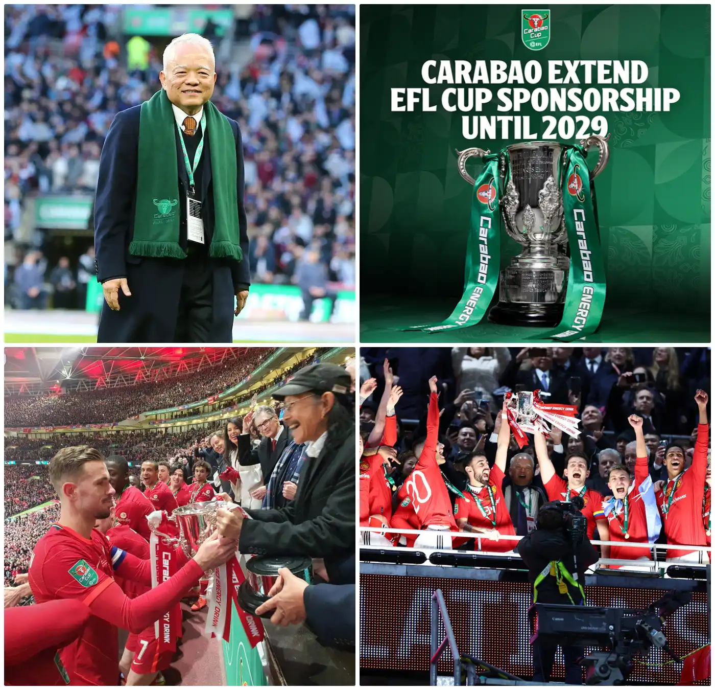 การต่อสัญญาครั้งใหม่เป็นข้อตกลง 2 ปี ถือเป็นความร่วมมือครั้งประวัติศาสตร์ของแบรนด์ไทยอย่างคาราบาว เพราะจะทำให้การแข่งขันลีกคัพอังกฤษใช้ชื่อ Carabao Cup ต่อเนื่องไปจนถึงฤดูกาล 2028/29 รวมระยะเวลา 12 ฤดูกาล นับเป็นผู้สนับสนุนที่ยาวนานที่สุด
