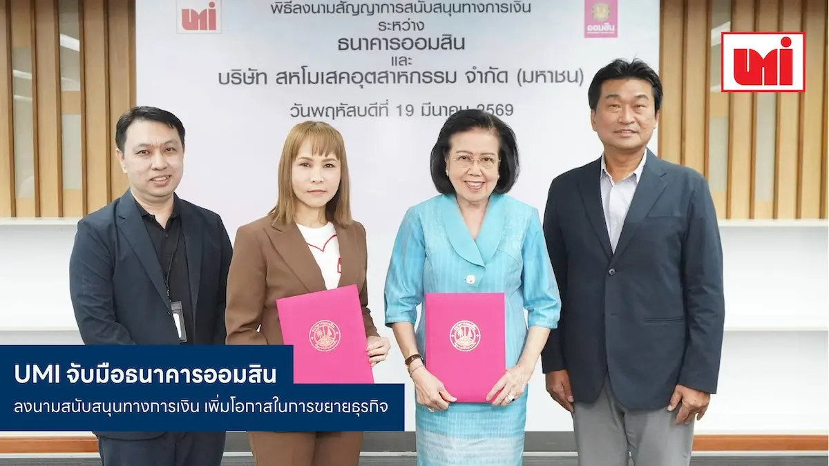 คุณปวีณา เหล่าวิวัฒน์วงศ์ (ที่ 2 จากขวา) ประธานกรรมการบริหาร และคุณสุทิน ยุทธนาวราภรณ์ (ขวา) กรรมการผู้จัดการ บริษัท สหโมเสคอุตสาหกรรม จำกัด (มหาชน) หรือ UMI ร่วมพิธีลงนามในสัญญาสนับสนุนทางการเงินกับธนาคารออมสิน โดยมีคุณจิรภัทร นาคเอี่ยม (ที่ 2 จากซ้าย) ผู้อำนวยการฝ่ายธุรกิจลูกค้าขนาดใหญ่ และคุณพิษณุ นันท์ดี (ซ้าย) รองผู้อำนวยการฝ่ายธุรกิจลูกค้าขนาดใหญ่ เป็นผู้แทนจากธนาคาร งานดังกล่าวจัดขึ้น ณ สำนักงานใหญ่ บริษัท สหโมเสคอุตสาหกรรม จำกัด (มหาชน) เมื่อเร็ว ๆ นี้ โดยความร่วมมือดังกล่าว ธนาคารออมสินได้ให้การสนับสนุนวงเงิน เพื่อใช้เป็นเงินทุนหมุนเวียนในการดำเนินธุรกิจ และรองรับแผนการขยายการผลิตและการจัดจำหน่ายผลิตภัณฑ์กระเบื้องเซรามิกคุณภาพมาตรฐานสากล ภายใต้แบรนด์ “ดูราเกรส” และ “เซอเกรส”