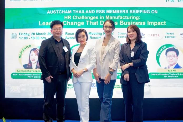 บริษัท พีอาร์ทีอาร์ กรุ๊ป จำกัด (มหาชน) หรือ PRTR เข้าร่วมเวที Joint Chambers ESB Members Briefing ซึ่งจัดโดย Australian-Thai Chamber of Commerce (AustCham Thailand) เพื่อร่วมแลกเปลี่ยนมุมมองด้านการบริหารทรัพยากรบุคคลในภาคอุตสาหกรรม ภายใต้หัวข้อ “Leading EEC Businesses Through People in Times of Change” ไฮไลต์สำคัญของงาน คือเวทีเสวนาเกี่ยวกับบทบาทของ “คน” ในการขับเคลื่อนองค์กรภาคการผลิต ท่ามกลางความเปลี่ยนแปลงรอบด้าน ทั้งเทคโนโลยีที่เร่งตัวขึ้น และบริบทภูมิรัฐศาสตร์ที่ส่งผลต่อห่วงโซ่อุปทานและการแข่งขันทางธุรกิจ โดย คุณจริยา บุญพิทักษ์สถิตย์ รองประธานเจ้าหน้าที่อาวุโส ฝ่ายบริการฝึกอบรม บริษัท เดอะ แบล็คสมิธ จำกัด (The Blacksmith) ในเครือ PRTR ได้ร่วมแลกเปลี่ยนมุมมองกับผู้บริหารจาก NS BlueScope ถึงแนวทางการบริหาร “คน” ให้สอดคล้องกับทิศทางธุรกิจยุคใหม่