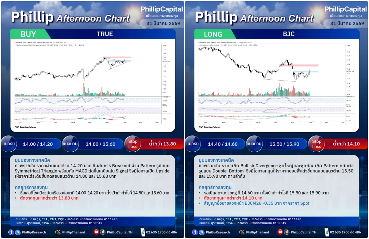 หุ้นแนะนำบ่ายนี้ TRUE, BJC (Long)