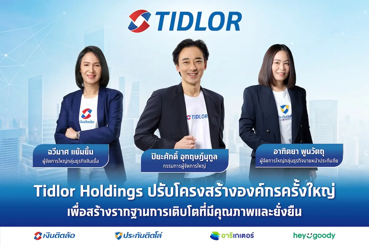กลุ่ม Tidlor Holdings (TIDLOR) โดย บมจ. เงินติดล้อ ประกาศปรับโครงสร้างองค์กรครั้งใหญ่ โดยแต่งตั้ง นางสาวฉวีมาศ แย้มยิ้ม ดำรงตำแหน่ง ผู้จัดการใหญ่กลุ่มธุรกิจสินเชื่อ และแต่งตั้ง นางอาฑิตยา พูนวัตถุ ดำรงตำแหน่ง ผู้จัดการใหญ่กลุ่มธุรกิจนายหน้าประกันภัย ขณะที่ นายปิยะศักดิ์ อุกฤษฎ์นุกูล กรรมการผู้จัดการใหญ่ ยังคงนั่งแท่นแม่ทัพใหญ่ เพื่อกำหนดทิศทางการเติบโตของกลุ่ม Tidlor Holdings มีผลตั้งแต่วันที่ 1 เมษายน 2569 เป็นต้นไป