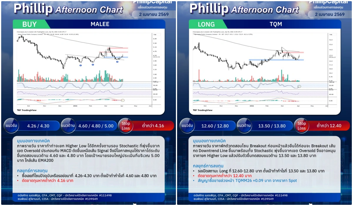 หุ้นแนะนำบ่ายนี้ MALEE, TQM (Long)