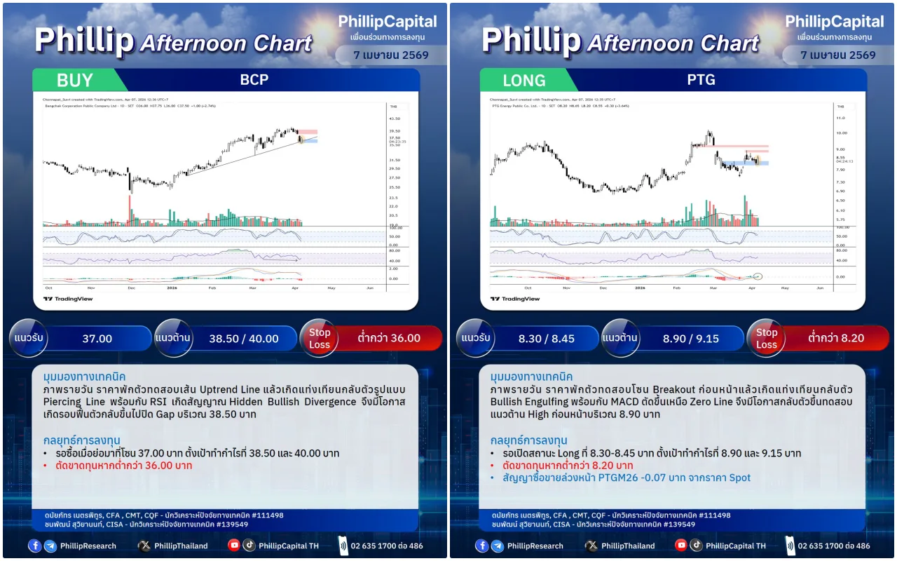 หุ้นแนะนำบ่ายนี้ BCP, PTG (Long)