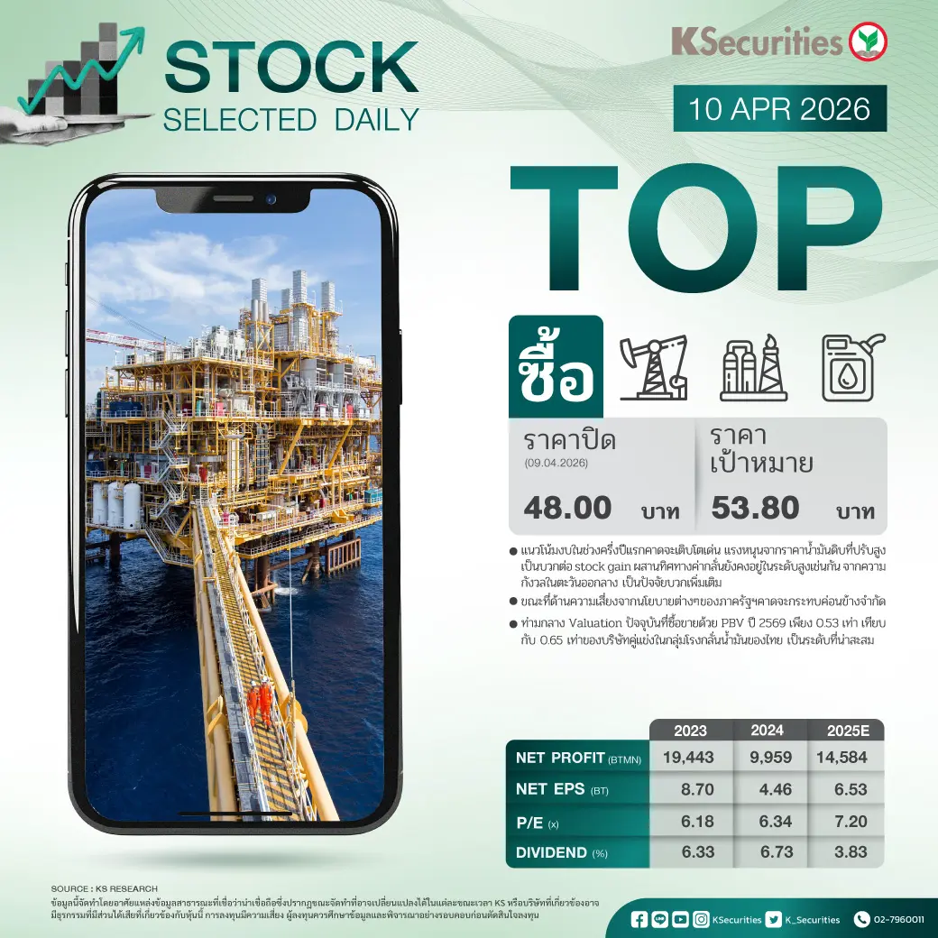 TOP คาดงบ 1H69 โตเด่น Valuation อยู่ในระดับที่น่าสะสม