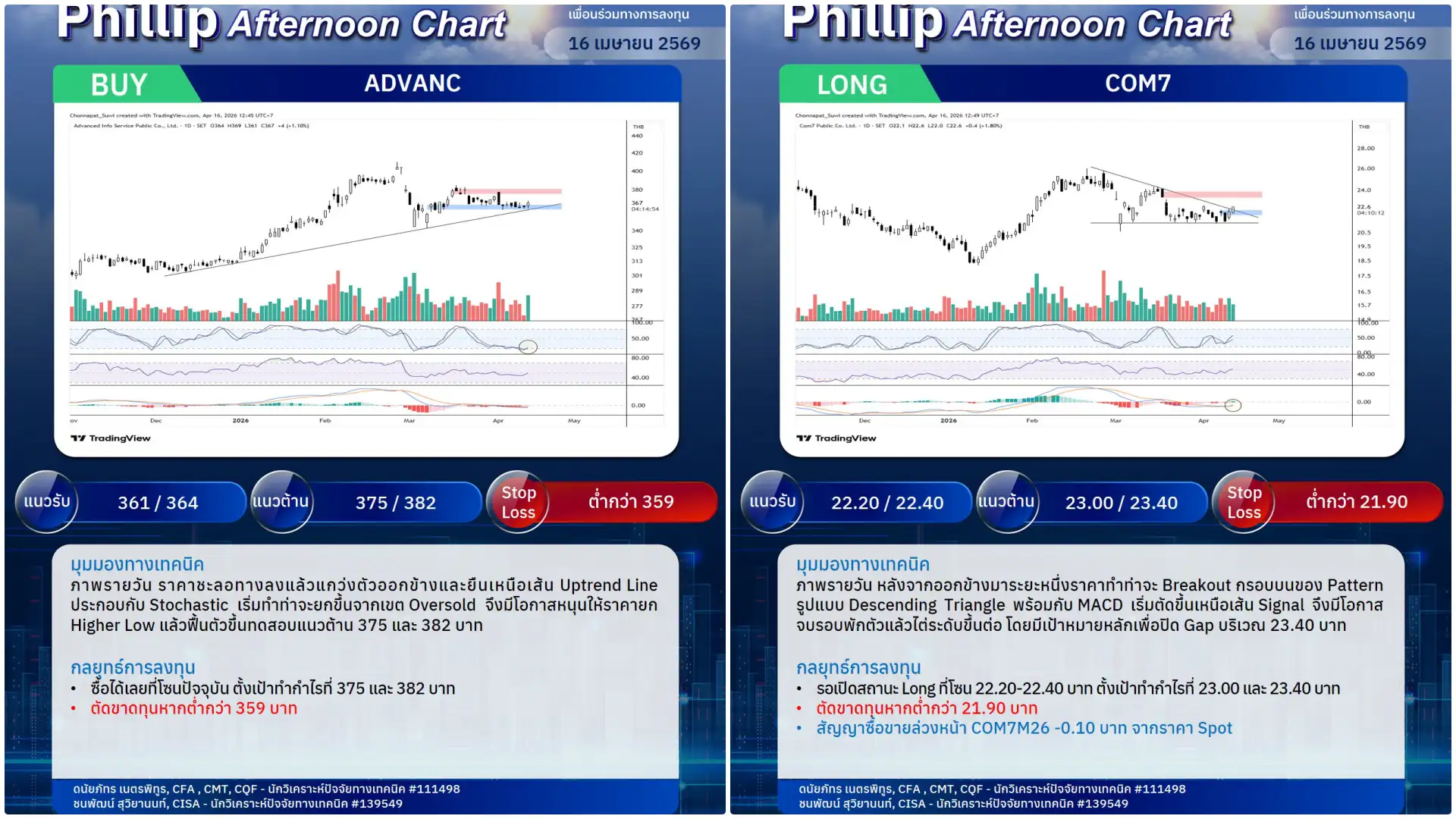หุ้นแนะนำบ่ายนี้ ADVANC, COM7 (Long)
