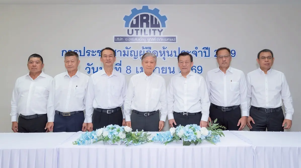 นายนนทิกร กาญจนะจิตรา ประธานกรรมการ และนายจรัญ วิวัฒน์เจษฎาวุฒิ ประธานเจ้าหน้าที่บริหาร บริษัท เจ.อาร์.ดับเบิ้ลยู. ยูทิลิตี้ จำกัด (มหาชน) (JR) พร้อมคณะกรรมการและคณะผู้บริหาร ถ่ายภาพร่วมกันหลังการประชุมสามัญผู้ถือหุ้นประจำปี 2569 โดยมีผู้ถือหุ้นเข้าร่วมประชุมเป็นจำนวนหุ้นทั้งสิ้น 82.95% ของจำนวนหุ้นทั้งหมด และมีมติอนุมัติจ่ายปันผลงวดผลการดำเนินงานปี 2568 เป็นเงินสดในอัตรา 0.055 บาท/หุ้น กำหนดจ่ายวันที่ 30 เม.ย.นี้ ส่วนแผนการดำเนินงานในปี 2569 ตั้งเป้ารายได้เติบโต 10-15% มุ่งเน้นการขยายงานในกลุ่มธุรกิจที่มีศักยภาพ ทั้งงานรับเหมาโครงการ ระบบไฟฟ้าและ ICT ธุรกิจเทรดดิ้งในกลุ่ม Oil & Gas รวมถึงการรุกสู่ธุรกิจพลังงานสีเขียว (Green Energy) สร้าง New S-Curve รองรับเมกะเทรนด์พลังงานสะอาด หนุนการเติบโตอย่างยั่งยืน พร้อมโชว์งานในมือรอรับรู้รายได้ (Backlog) กว่า 6,266 ล้านบาท ทยอยรับรู้รายได้ใน 3-5 ปีข้างหน้า ซึ่งงานดังกล่าวจัดขึ้นเมื่อเร็ว ๆ นี้