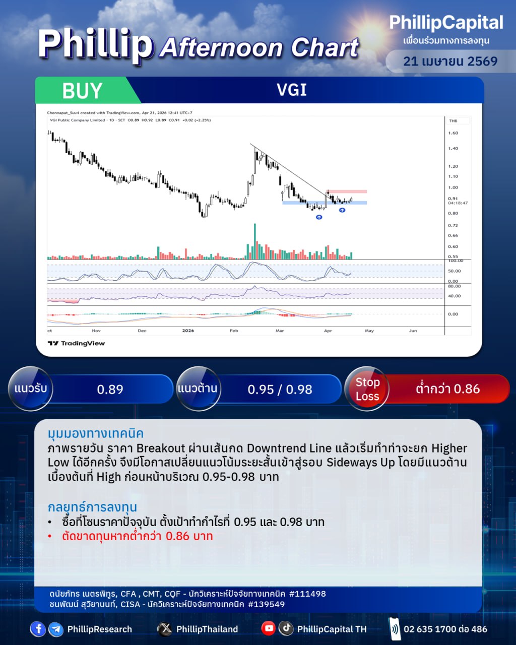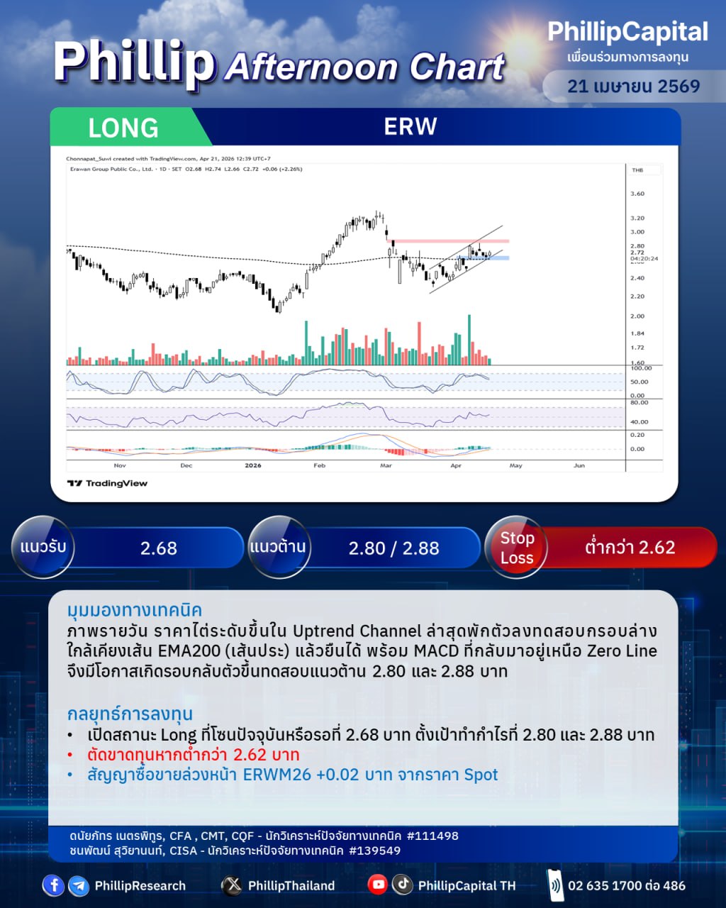 หุ้นแนะนำบ่ายนี้ VGI, ERW (Long)