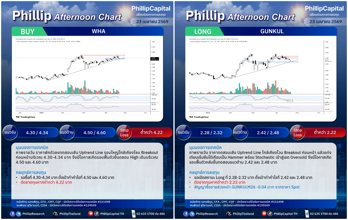 หุ้นแนะนำบ่ายนี้ WHA, GUNKUL (Long)