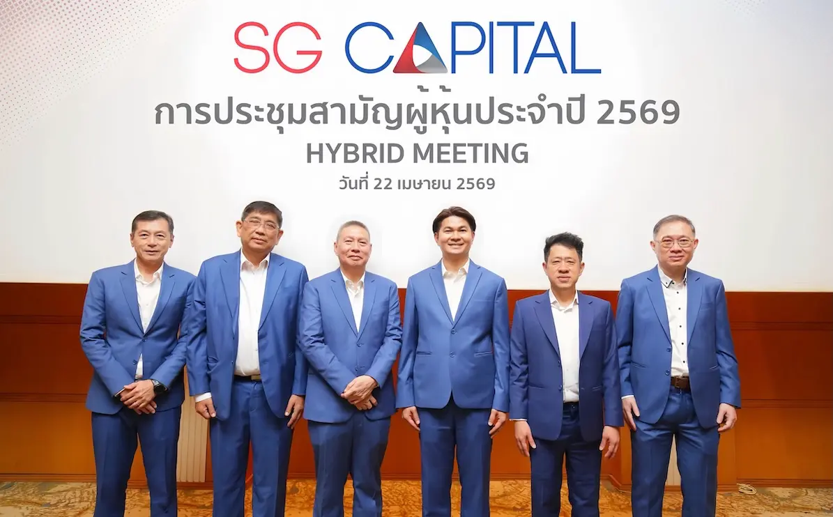 นายพิพิธ พิชัยศรทัต (ที่ 3 จากซ้าย) ประธานกรรมการ และ นายอโณทัย ศรีเตียเพ็ชร (ที่ 4 จากซ้าย) กรรมการผู้จัดการ บริษัท เอสจี แคปปิตอล จำกัด (มหาชน) หรือ SGC ผู้นำด้านสินเชื่อและผลิตภัณฑ์ทางการเงินชั้นนำของประเทศไทย พร้อมด้วยคณะกรรมการและทีมผู้บริหารบริษัท จัดประชุมสามัญผู้ถือหุ้น ประจำปี 2569 ในรูปแบบ Hybrid ณ สำนักงานใหญ่ อาคารโทรคมนาคม บางรัก ในวันที่ 22 เมษายน 2569 ที่ผ่านมา โดยที่ประชุมมีมติอนุมัติทุกวาระตามที่คณะกรรมการเสนอ พร้อมตอกย้ำทิศทางการดำเนินธุรกิจในปี 2569 มุ่งขับเคลื่อนการเติบโตผ่านพอร์ตสินเชื่อเช่าซื้อโทรศัพท์มือถือ (Lock Phone) ซึ่งเป็น Growth Engine หลัก ภายใต้แพลตฟอร์มดิจิทัล SG Finance+ ควบคู่การบริหารต้นทุนทางการเงินและควบคุมความเสี่ยงอย่างรัดกุม พร้อมเดินหน้าขยายรายได้ในกลุ่ม Non-Interest Income ผ่านบริการประกันความคุ้มครองหน้าจอโทรศัพท์มือถือ SG Shield ที่เติบโตต่อเนื่อง นอกจากนี้ บริษัทยังเปิดตัวผลิตภัณฑ์ใหม่ “Solar Rooftop Loan” ในกลุ่ม ESG Product & Green Loan เพื่อตอบรับเมกะเทรนด์พลังงานสะอาดและสร้างโอกาสการเติบโตในระยะยาว