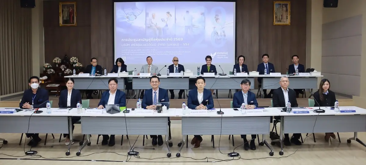 ผศ.พญ.สายสุณี วนดุรงค์วรรณ ประธานเจ้าหน้าที่บริหาร บริษัท ศรีวิชัยเวชวิวัฒน์ จำกัด (มหาชน) หรือ VIH เปิดเผยว่า ที่ประชุมสามัญผู้ถือหุ้นประจำปี 2569 ในวันที่ 24 เมษายน 2569 ซึ่งวาระสำคัญมีมติอนุมัติจ่ายเงินปันผลจากงวดผลการดำเนินงานในปี 2568 ที่ 0.40 บาทต่อหุ้น โดยกำหนดจ่ายเงินวันที่ 22 พฤษภาคม 2569 กำหนดทิศทางการเติบโตปี 2569 วางเป้าหมายสร้างผลการดำเนินงานนิวไฮต่อเนื่อง โดยคาดว่ารายได้จากธุรกิจโรงพยาบาลเติบโต 10% จากปีก่อน สาเหตุหลักจากการพัฒนาศูนย์การแพทย์เฉพาะทางที่มีประสิทธิภาพ ตอบโจทย์ลูกค้า ควบคู่การบริหารจัดการอย่างมีประสิทธิภาพ รวมทั้งสอดคล้องกับแผนโครงการ JUMP+ ระหว่างปี 2569–2571