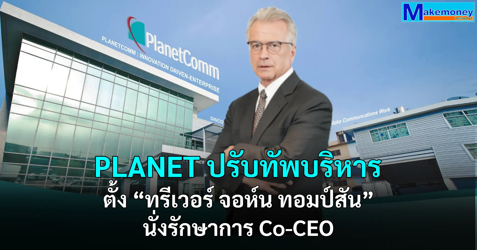 บริษัท แพลนเน็ต คอมมิวนิเคชั่น เอเชีย จำกัด (มหาชน) หรือ PLANET ผู้นำด้านเทคโนโลยีสื่อสารและดิจิทัล ประกาศมติที่ประชุมคณะกรรมการบริษัท แต่งตั้ง นายทรีเวอร์ จอห์น ทอมป์สัน ดำรงตำแหน่งรักษาการประธานเจ้าหน้าที่บริหารร่วม (Co-CEO) เพื่อขับเคลื่อนองค์กรและบริหารจัดการบริษัทในเครือให้เป็นไปตามเป้าหมาย ยืนยันการเปลี่ยนแปลงไม่กระทบการดำเนินงาน พร้อมเดินหน้าสร้างผลตอบแทนที่ดีแก่ผู้ถือหุ้น